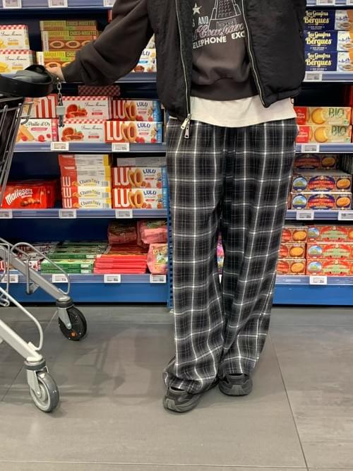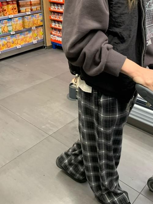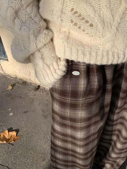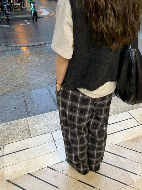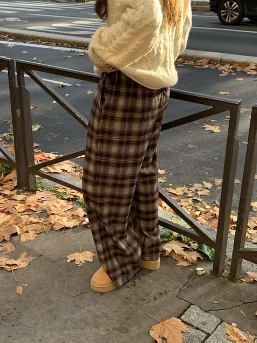[25F1002]英倫復古格紋鬆緊寬褲(兩色)