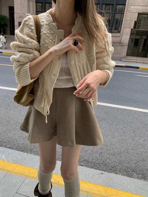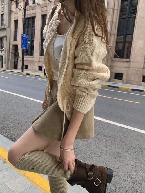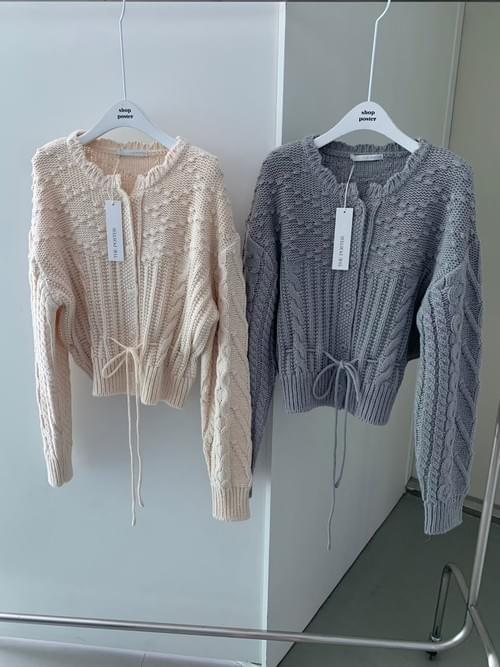 [25F1003]精緻花瓣領口腰間抽繩針織外套(兩色)