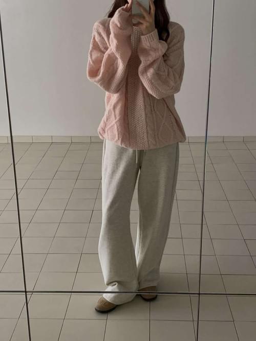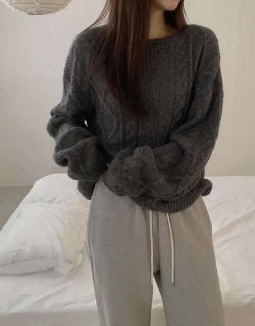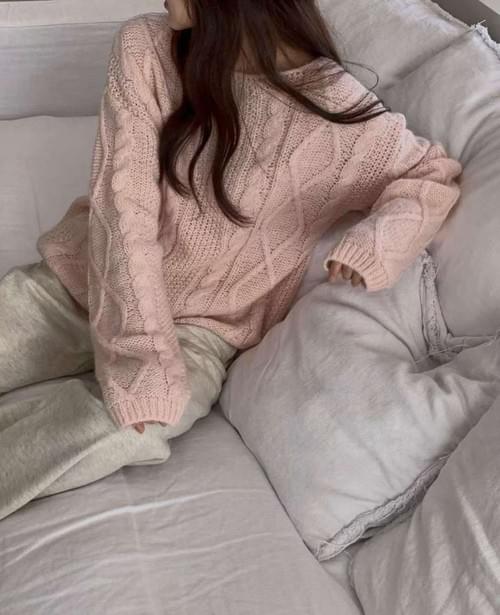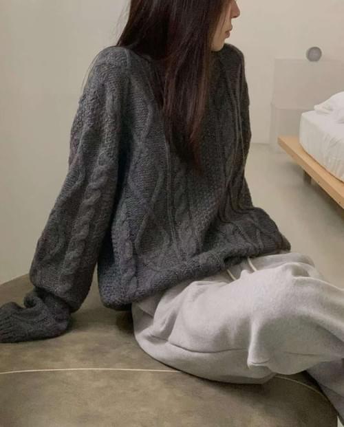 [25F1015]寬鬆麻花大圓領混羊駝毛針織毛衣(四色)
