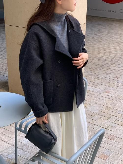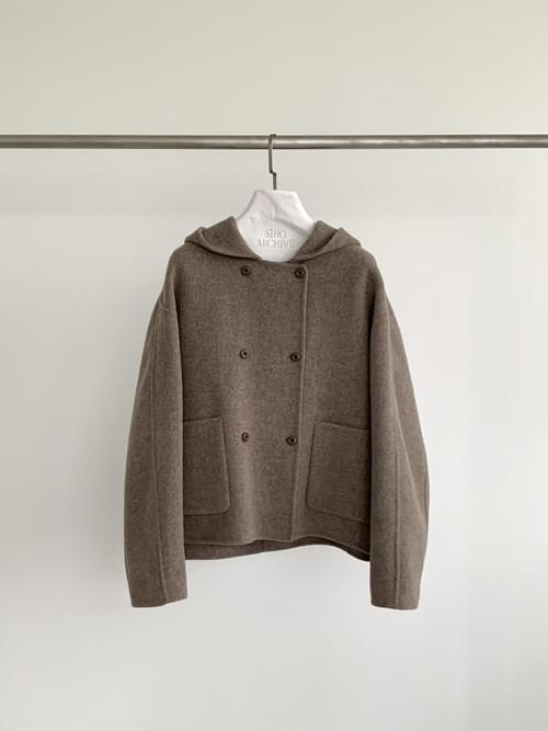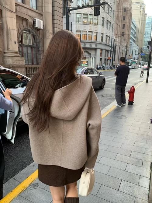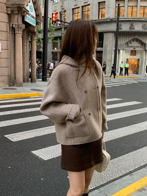 [25F1016]大衣首選!甜美系連帽雙排釦手工羊毛大衣(兩色)
