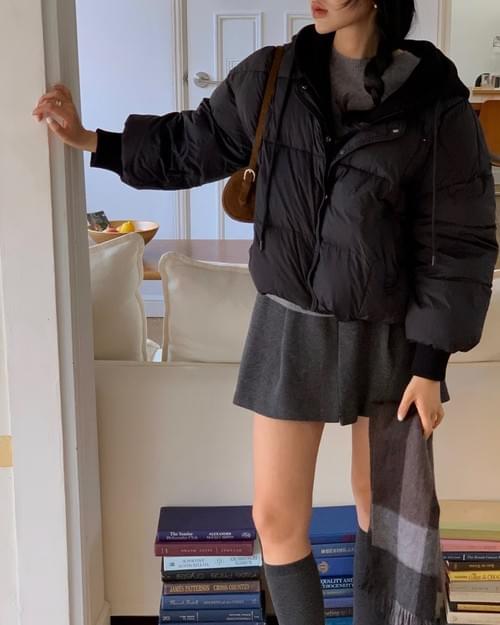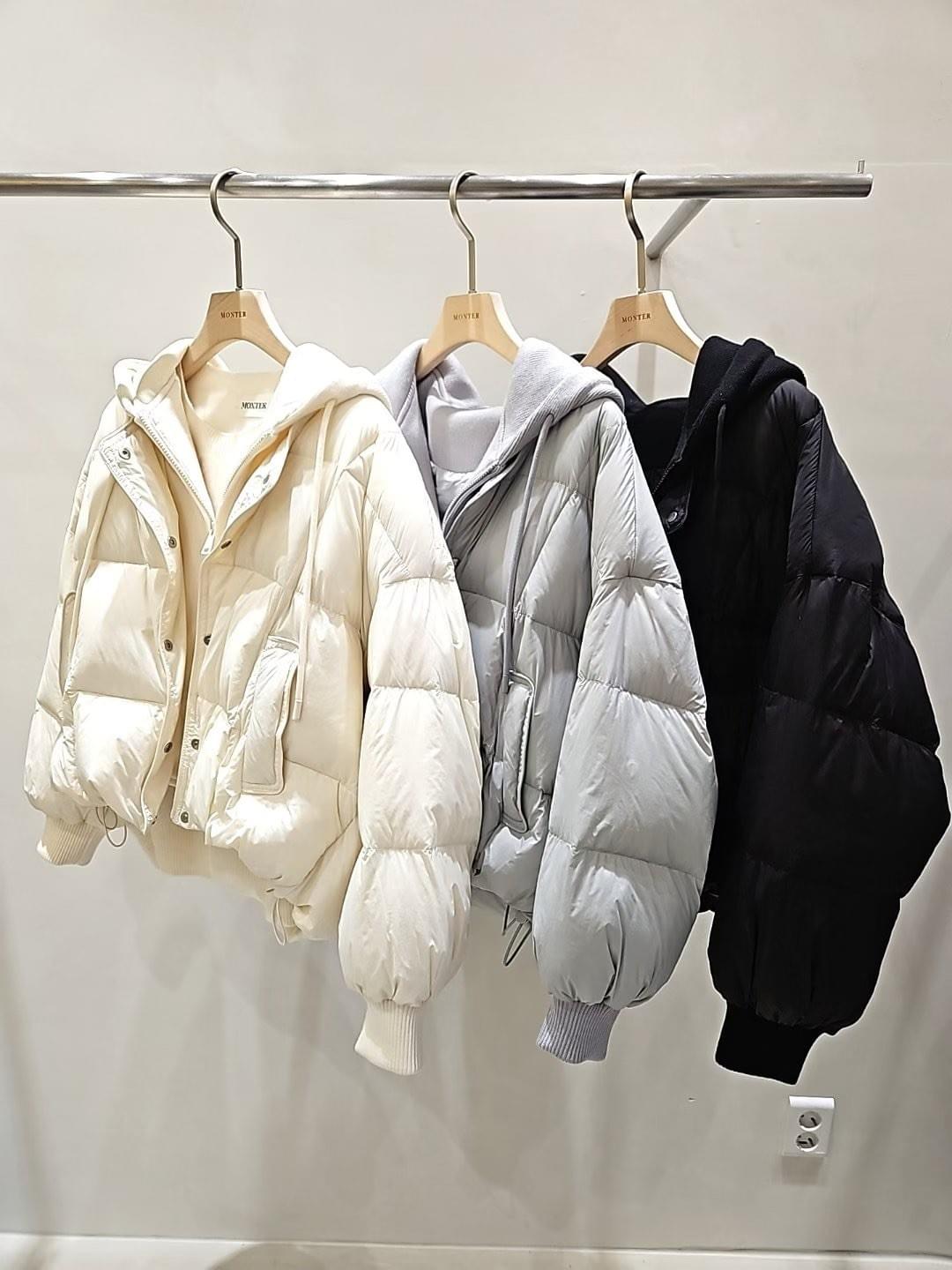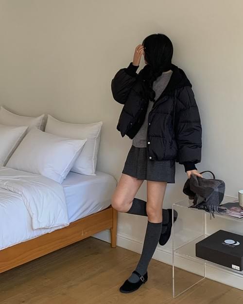 [25W1201]針織連帽拼接短版羽絨外套(三色)